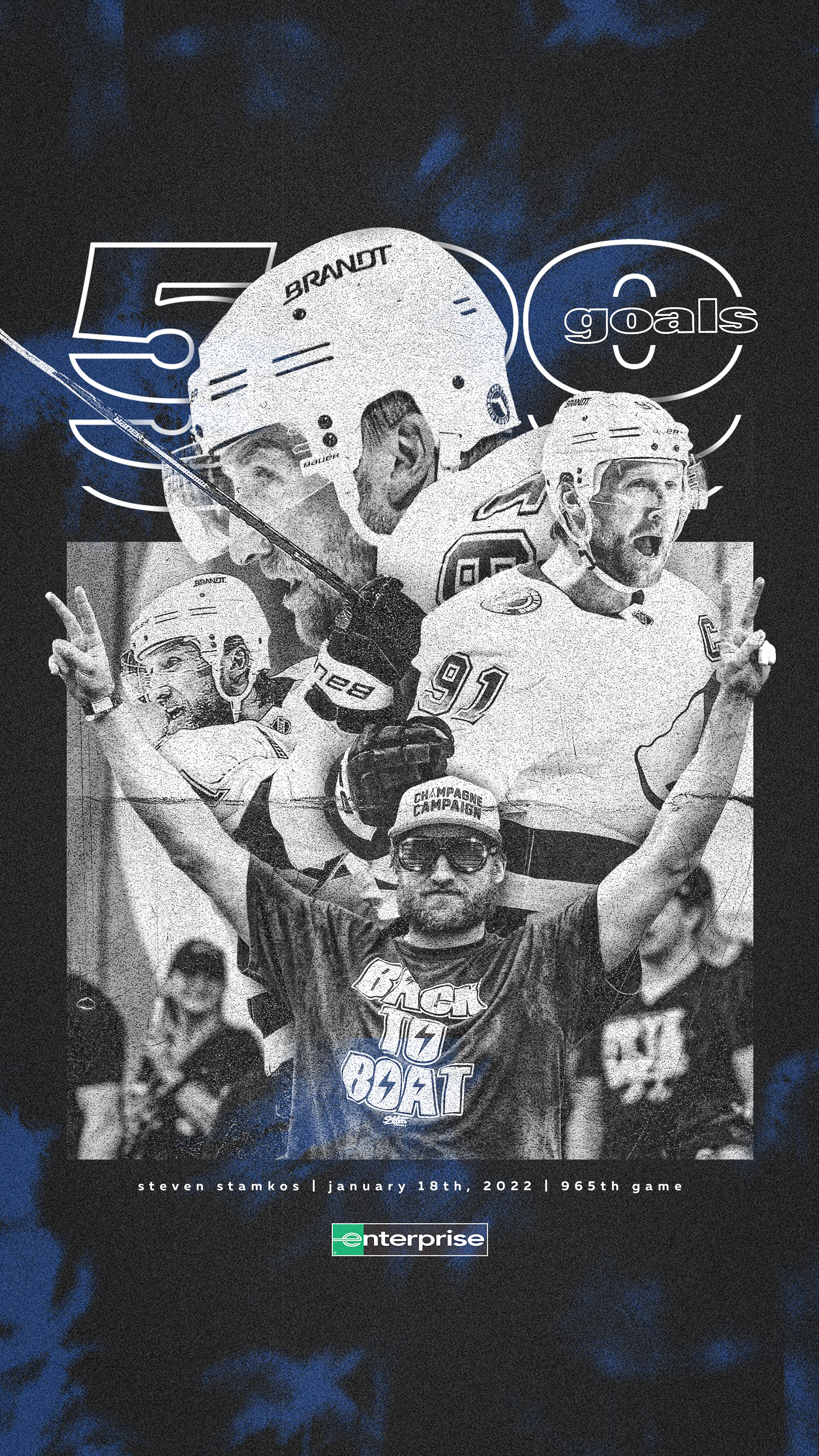 Commemorative graphic created for the Tampa Bay Lightning of the National Hockey League (NHL) for the 2022-23 Season honoring Steven Stamkos' achievement of 500 career goals scored.