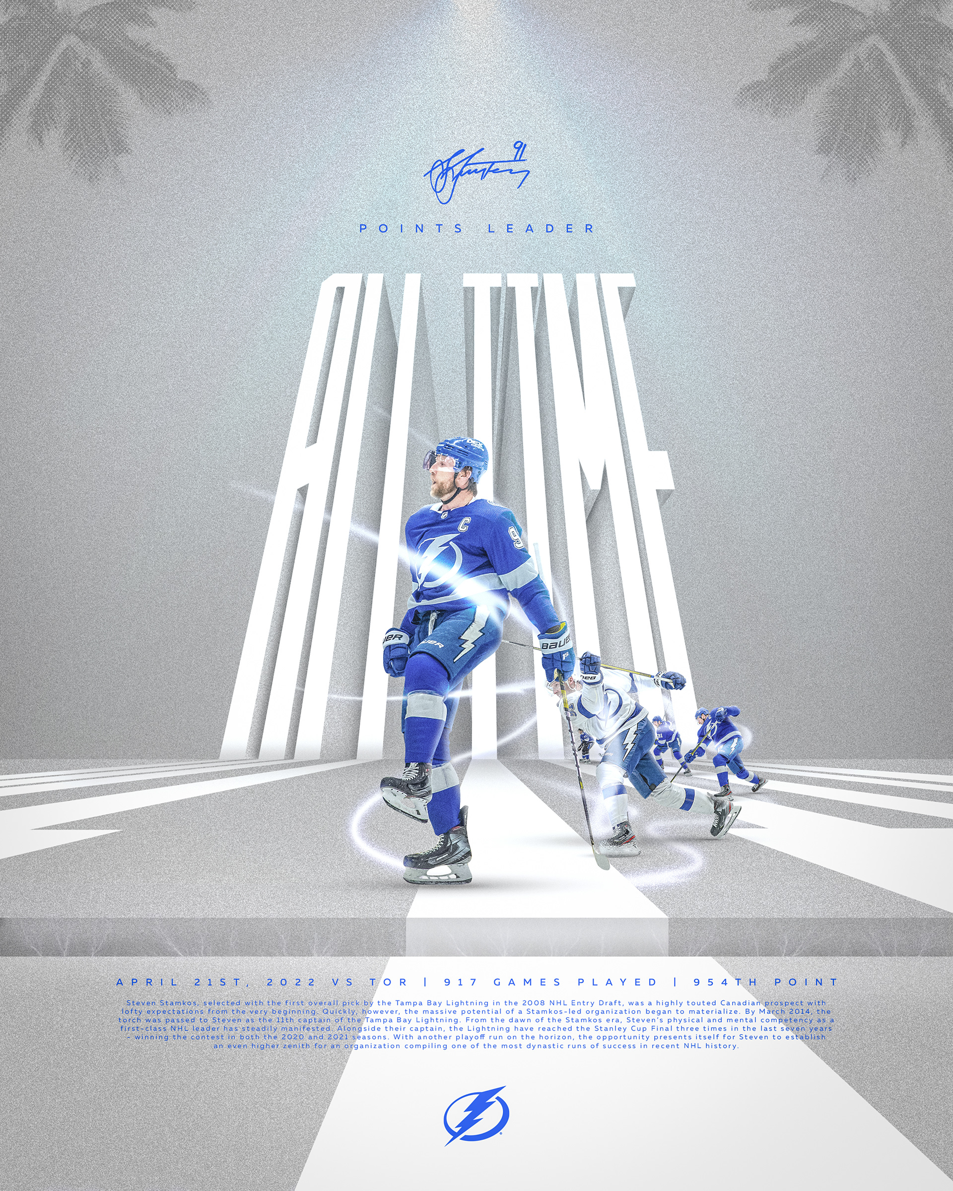 A culmination of our sports graphic design, illustration and branding work for the Tampa Bay Lightning of the National Hockey League (NHL) for the 2021-22 Season. The Lightning reached the Stanley Cup Final for the third year in a row.